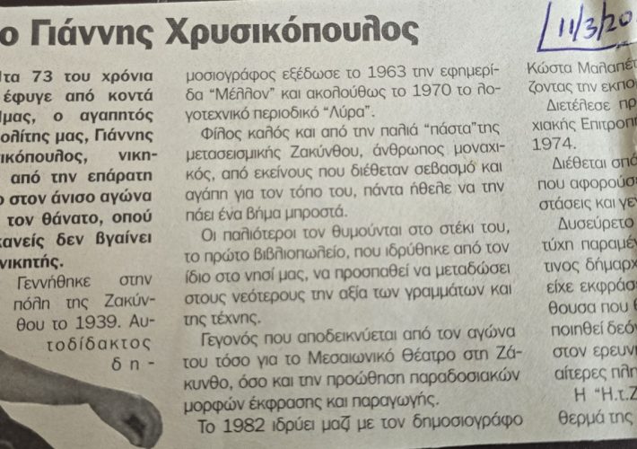 Ένα άρθρο της εβδομαδιαίας τοπικής εφημερίδας “ΕΛΕΥΘΕΡΗ ΑΠΟΨΗ” που δεν κυκλοφορεί πλέον λόγω συνταξιοδότησης του εκδότη της Κώστα Ι. Μαλαπέτσα εντόπισα σε ένα από τα πολλά...