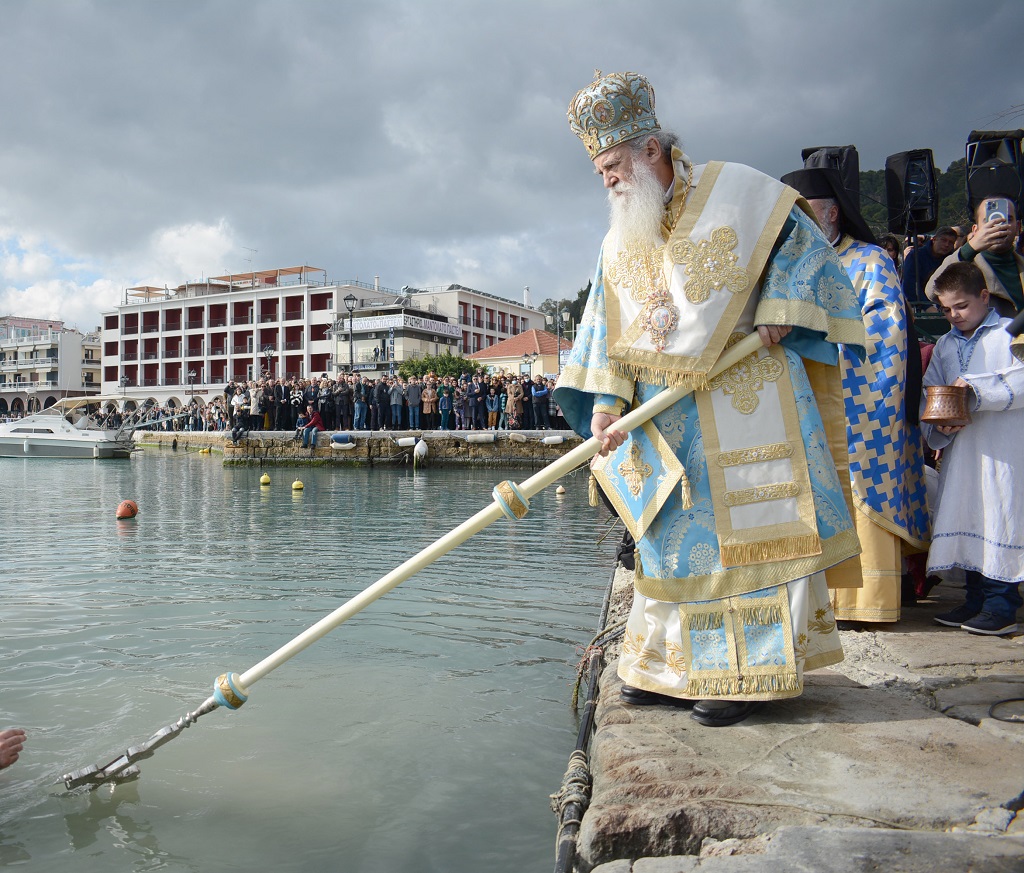 Σύμφωνα με την παράδοση, το βράδυ της παραμονής των Θεοφανίων συμβαίνει το υπερφυσικό γεγονός να «ανοίγουν οι ουρανοί» για να δεχθούν τις ευχές των ανθρώπων, αρκεί εκείνοι που θα ευχηθούν, να το κάνουν από τα βάθη της πίστης και της ψυχής τους… τότε μόνο, η ευχή θα πραγματοποιηθεί.                                                                                                   Τα Θεοφάνεια στον Διονύσιο Σολωμό:  “Μιὰ φορὰ τὸ χρόνο, τα Θεοφάνεια τὴ νύχτα, σὲ μιὰ στιγμή γιομάτη μυστήριο, ἀνοίγουν οἱ οὐρανοὶ κι ὅποιος προφτάση τότε νὰ ζητήσῃ ὅ,τι θέλει, θὰ ταποχτήσῃ αὐτὸ ποὺ θέλει…”.                                  [*Ο Κωστής Παλαμάς για το Διονύσιο Σολωμό **Ἀπὸ τὰ βάθη τοῦ τάφου].                                                                                   Ο Άγιος στην Θύρα Του, όπως όλες τις μεγάλες γιορτές… Ο Άγιος Διονύσιος ξημερώματα βγαίνει στη θύρα Του… Ξημερώματα Φωτώνε, όπως ορίζει η Ζακυνθινή παράδοση, λίγο πριν το ξημέρωμα, με μάσκουλα και κωδονοκρουσίες, ο Άγιος της Αγάπης και της Συγνώμης και Προστάτης απανταχού των Ζακυνθίων Άγιος Διονύσιος θα βγει στη Θύρα Του. Όπως έγραφε ο αλησμόνητος ΔΙΟΝΥΣΗΣ ΦΛΕΜΟΤΟΜΟΣ… “Ο Άγιος Διονύσιος εκτός από τις δύο του μεγάλες γιορτές (17 Δεκεμβρίου και 24 Αυγούστου), όπου κρατούν τρεις μέρες κάθε φορά και το Σκήνωμά Του παραμένει όρθιο για προσκύνημα, μπαίνει «στην Θύρα Του» και στις τρεις μεγάλες δεσποτικές γιορτές (Χριστούγεννα, Φώτα και Πάσχα). Έτσι απόψε το βράδυ, μέσα στην σιγαλιά, εκεί λίγο πριν τα χαράματα, θα ακουστούν 3 κανονιές και χαρούμενα σένια από το καμπαναρίο Του για να μάθει το νησί πως ο Προστάτης του όρθιος συνεορτάζει την μεγάλη γιορτή”.  Χαρακτηριστικό το μπλέ, (λόγω της εορτής των υδάτων), παραπέτασμα της πόρτας του δωματίου Του. Το γεγονός της τοποθέτησης του Αγίου στην Θύρα Του γίνεται γνωστό στο νησί λίγο πριν τα χαράματα, κατά τις 5.00 το πρωί με 3 κανονιές καθώς και με τα χαρούμενα σένια του καμπαναριού.  Ο Δεσπότης δεν πετάει τον Σταυρό στην θάλασσα δεμένο σε μία κορδέλα όπως στην υπόλοιπη Ελλάδα αλλά τον «βαπτίζει» πάνω σε ένα μακρύ κοντάρι. Οι πιστοί παρευρισκόμενοι, στην θάλασσα βουτούν και ένα μαντήλι, δεμένο σε κλωστή, με το οποίο πλένουν τα μάτια τους, για να μην πάθουν κάποια ασθένεια.  Πιστοί οι Τζαντιώτες στα έθιμά τους και τις πολλαπλές ιδιαιτερότητες του νησιού τους, δεν δέχονται εύκολα αλλαγές. Έτσι όταν κάποια φορά ο πρώτος μη Επτανήσιος Δεσπότης, ο Χρυσόστομος Δημητρίου, θέλησε να αλλάξει το έθιμο και μη ακούγοντας (σαν Δεσπότης) κανέναν, πέταξε το Σταυρό στη θάλασσα με κορδελάκι, όλοι οι Ζακυνθινοί τού φώναζαν κοροϊδευτικά: «Τσιμπάει, Δεσπότη; Τσιμπάει;». Μια και η εικόνα τούς θύμιζε ψάρεμα. Από τότε το έθιμο επανήλθε και η ιδιαιτερότητα συνεχίζεται. Χαρακτηριστικά στην Ζάκυνθο, τα πάρκα του Φωτώνε, όπου πάνω γίνεται ο Μεγάλος Αγιασμός στις εκκλησίες. Τα νερατζόφυλλα και οι σπάθες είναι τα χαρακτηριστικά φυτά της γιορτής που τα στολίζουν. Οι Ιερείς κρατώντας στα χέρια τους τον Σταυρό και αγιαστούρες, που είναι επίσης κατασκευασμένες απαραίτητα από άνθη λεβάντας, μανουσάκια, χρυσάνθεμα και νεραντζόφυλλα ακολουθώντας καθιερωμένο τυπικό, επικαλούμενοι την ευλογία του Θεού, προβαίνουν στον Αγιασμό του ύδατος. Τη γιορτή των Φώτων, το έθιμο είναι να στολίζονται οι εικόνες στο εικονοστάσι του σπιτιού με νερατζόφυλλα. Στην κεντρική εικόνα βάζουν και ένα νεράντζι, το οποίο μένει εκεί