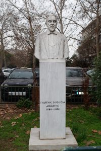 Η προτομή του Γεωργίου Τερτσέτη μπροστά από το Δικαστικό  μέγαρο Θεσσαλονίκης