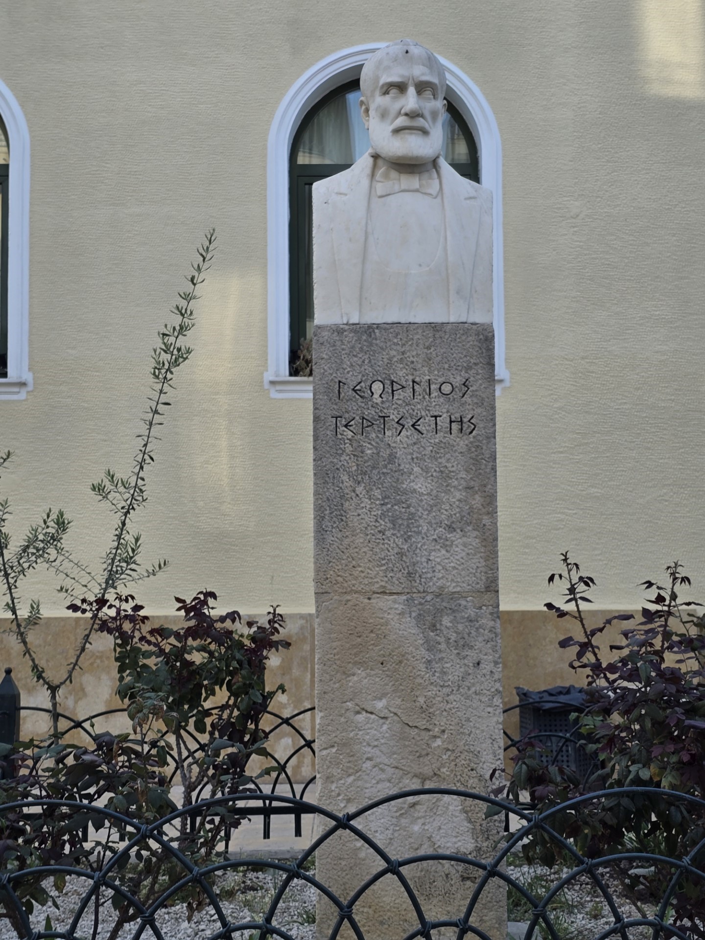 H προτομή του Γεωργίου Τερτσέτη μπροστά από το Δικαστικό μέγαρο στο Ναύπλιο.